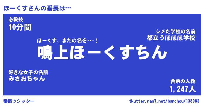 | 意味不明あだ名 | 『ペロリンほーくす』『永久保存ほーくす』 |