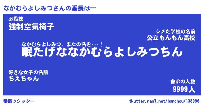 | 伝説のあだ名 | 『封印されし傭兵なかむらよしみつ』 |