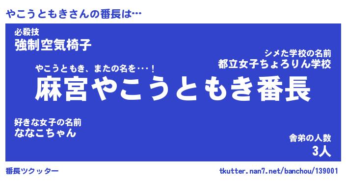 | ヒーロー風カッコイイあだ名 | 『スーパーヤコウトモキ』『天弓騎士ヤコ』 |