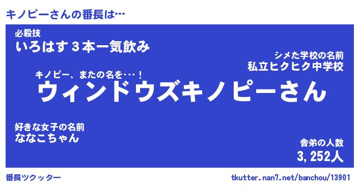 | 意味不明あだ名 | 『ペロリンキノピー』『永久保存キノピー』 |