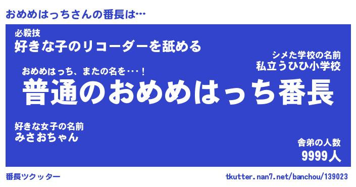 | ヒーロー風カッコイイあだ名 | 『スーパーオメメハッチ』『幻影騎士オメ』 |
