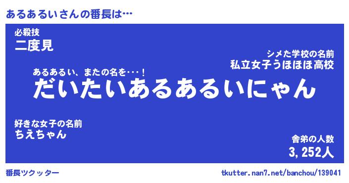 | 2回繰り返すあだ名 | 『あるある』『ああるる』『ぺらぺら』 |