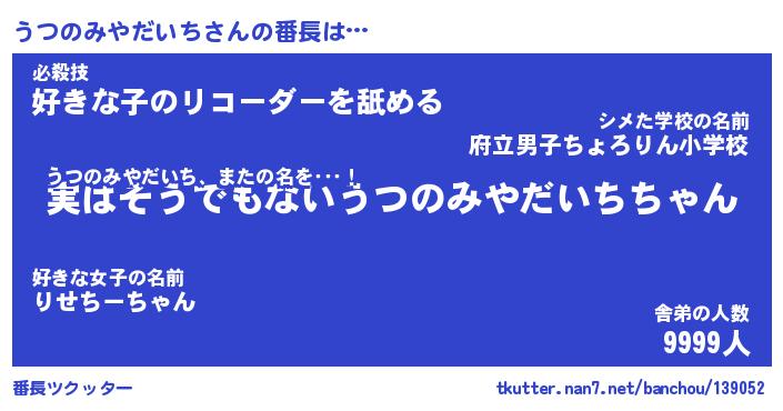| 肩書あだ名 | 『うつのみやだいち店長』 |