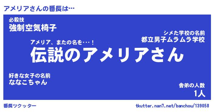 | 欧米人風あだ名 | 『マイケルアメリア』『ウサインアメリア』 |