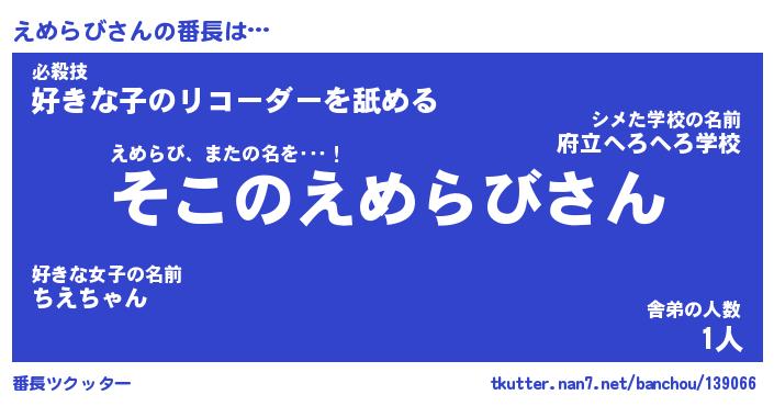 | 肩書あだ名 | 『えめらびCEO』『えめらび国家主席』 |