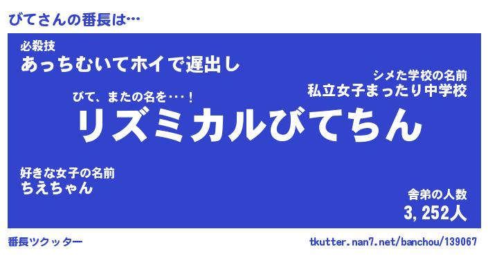 | ファンタジー風あだ名 | 『ビテフェル』『エターナルビテー』 |