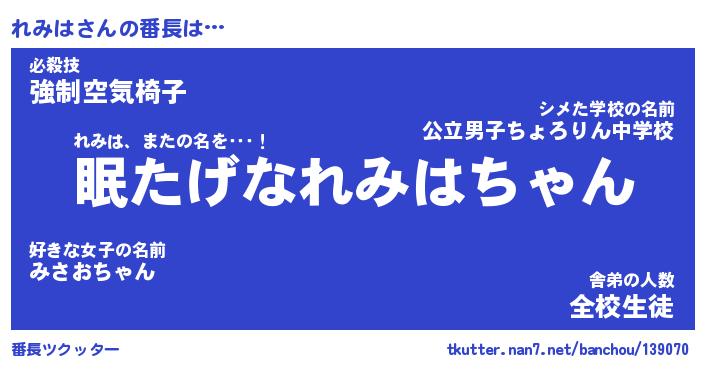 | 伝説のあだ名 | 『封印されしスナイパーれみは』 |