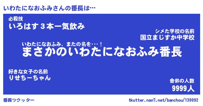 | ピコ太郎風あだ名 | 『イコ太郎』『ピイ太郎』『イワ十郎』 |