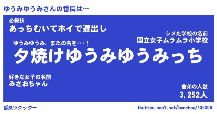 | ヒーロー風カッコイイあだ名 | 『スーパーユウミユウミ』『天弓騎士ユウ』 |