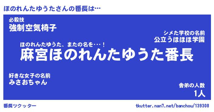 | 伝説のあだ名 | 『不死鳥のスナイパーほのれんたゆうた』 |