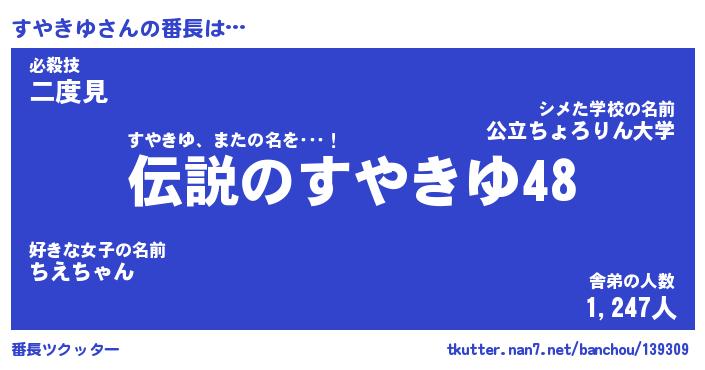 | ファンタジー風あだ名 | 『スヤフェル』『エターナルスヤキユー』 |
