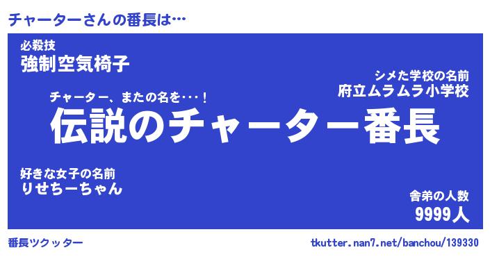 | ファンタジー風あだ名 | 『チャフェル』『エターナルチャーターー』 |