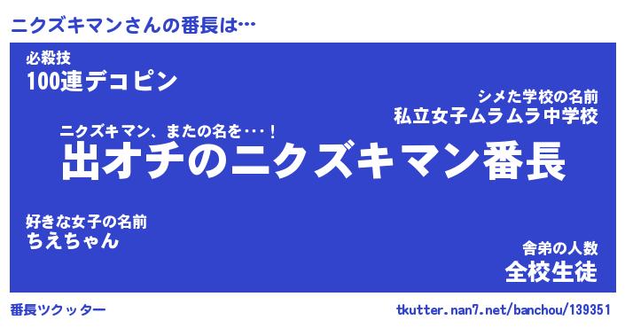 | ヒーロー風カッコイイあだ名 | 『スーパーニクズキマン』『銀牙騎士ニク』 |