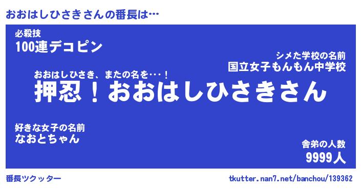 | ヘコむあだ名 | 『おおにー』『つくし』『おおを』 |