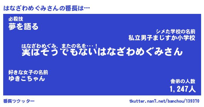 | 2回繰り返すあだ名 | 『はなはな』『ははなな』『なあなあ』 |