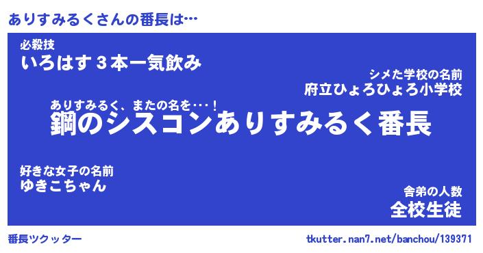 | 伝説のあだ名 | 『封印されしスナイパーありすみるく』 |