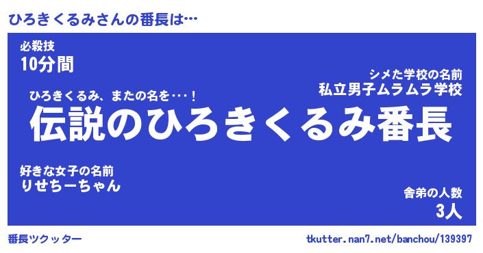 | 伝説のあだ名 | 『伝説のスナイパーひろきくるみ』 |