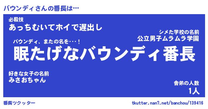 | 肩書あだ名 | 『バウンディ御曹司』『バウンディ班長』 |