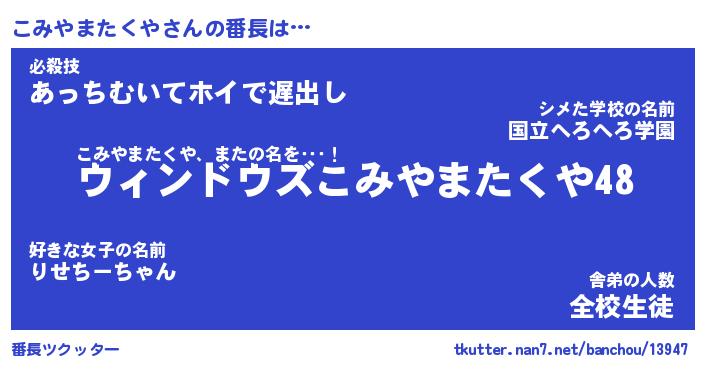| 肩書あだ名 | 『こみやまたくや社長』 |