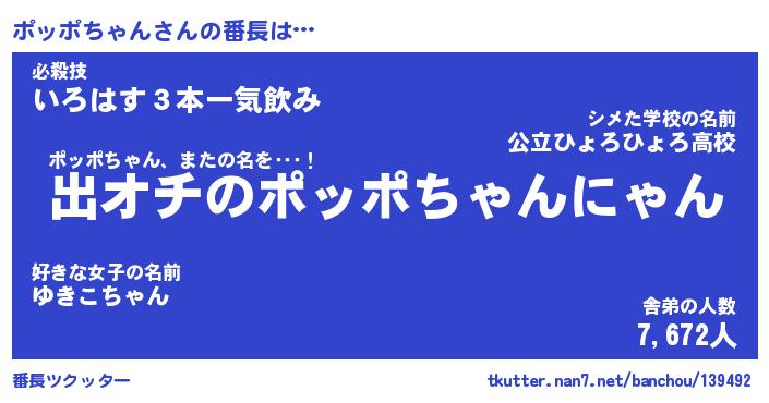 | ヒーロー風カッコイイあだ名 | 『スーパーポッポチャン』『炎刃騎士ポッ』 |