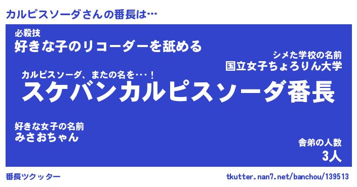| 欧米人風あだ名 | 『マイケルカルピスソーダ』 |