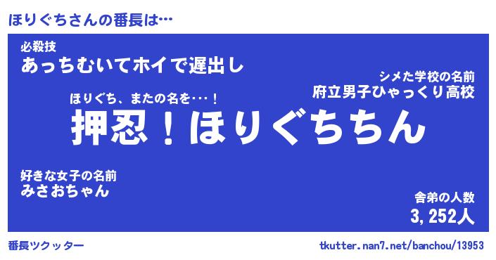 | 意味不明あだ名 | 『ペロリンほりぐち』『永久保存ほりぐち』 |