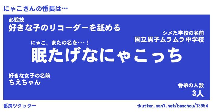 | ヘコむあだ名 | 『にゃにー』『酢こんぶ』『にゃ太郎』 |
