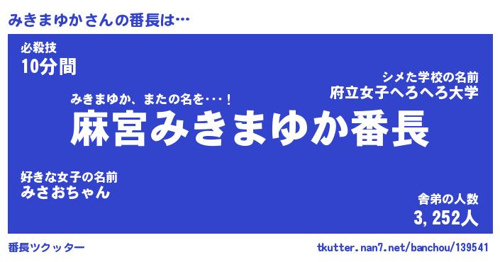 | ファンタジー風あだ名 | 『ミキフェル』『エターナルミキマユカー』 |