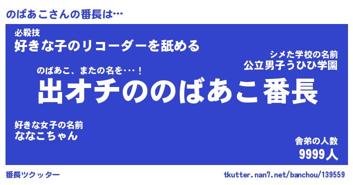 | 男性向けラノベタイトル風あだ名 | 『のばあこの憂鬱』 |