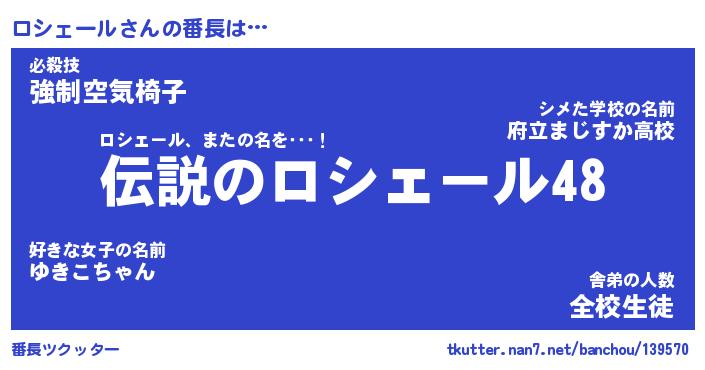| ファンタジー風あだ名 | 『ロシフェル』『エターナルロシェールー』 |