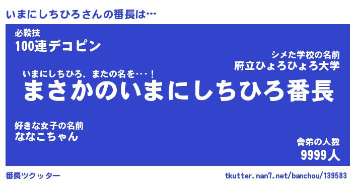 | ポケモン風あだ名 | 『イマチュウ』『イマニダネ』 |