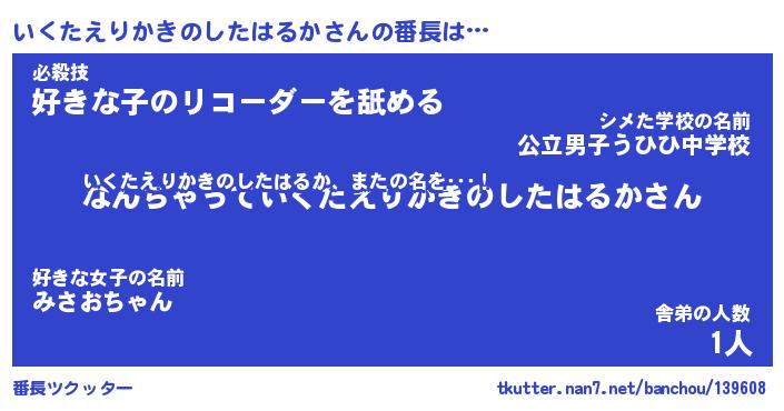 | 伝説のあだ名 | 『伝説の竜騎士いくたえりかきのしたはるか』 |