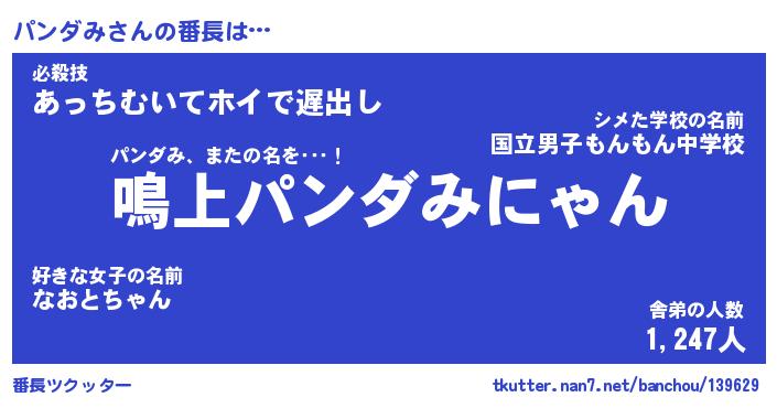 | 意味不明あだ名 | 『ペロリンパンダみ』『永久保存パンダみ』 |