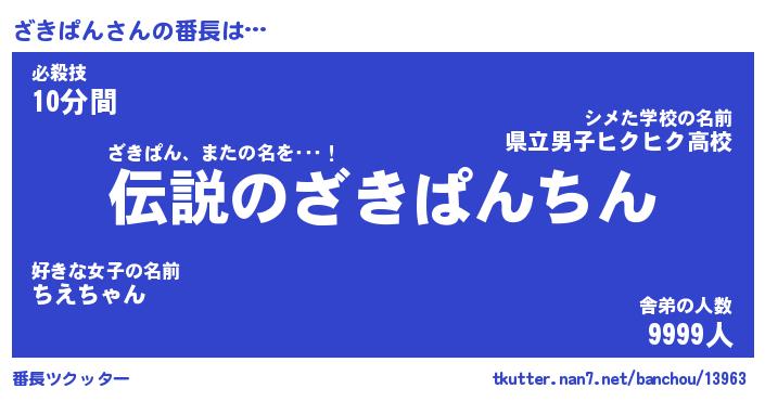 | 伝説のあだ名 | 『伝説のスナイパーざきぱん』 |