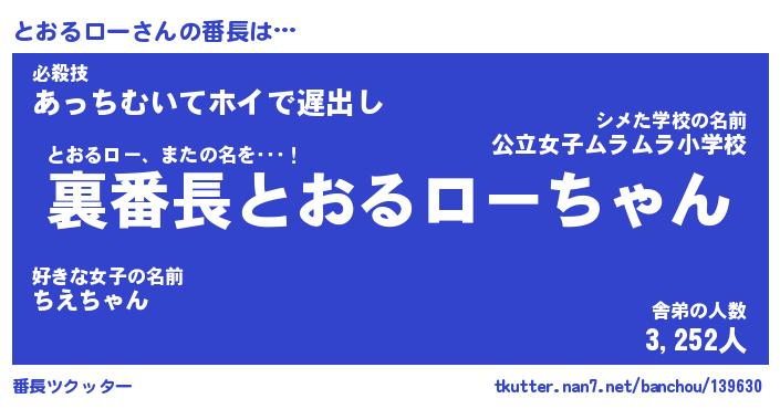 | ピコ太郎風あだ名 | 『トコ六郎』『ピト三郎』『トオ六郎』 |