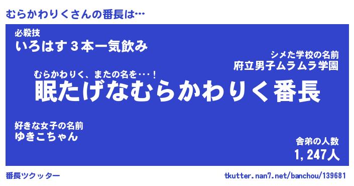 | ヒーロー風カッコイイあだ名 | 『スーパームラカワリク』『銀牙騎士ムラ』 |
