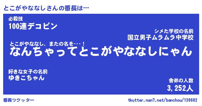 | ヘコむあだ名 | 『とこもー』『つくし』『とこっ子』 |