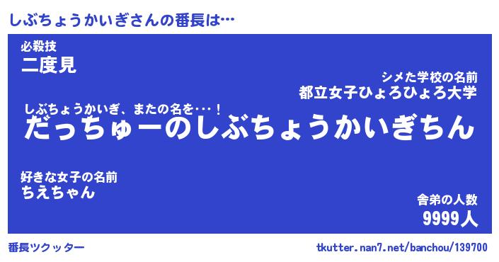 | 肩書あだ名 | 『しぶちょうかいぎ社長』 |