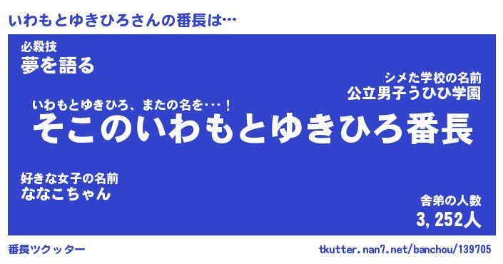 | ピコ太郎風あだ名 | 『イコ五郎』『ピイ二郎』『イワ十郎』 |