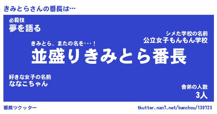 | 意味不明あだ名 | 『ペロリンきみとら』『永久保存きみとら』 |