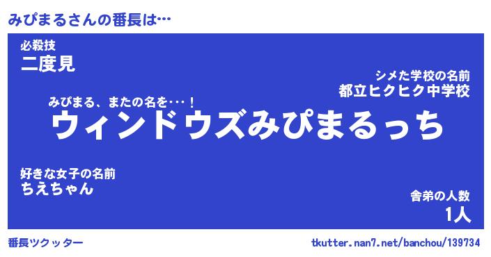| 伝説のあだ名 | 『伝説のスナイパーみぴまる』 |