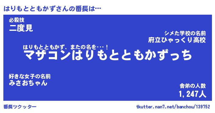 | 伝説のあだ名 | 『封印されし竜騎士はりもとともかず』 |