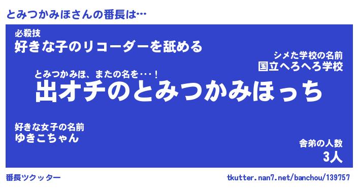 | 胡散臭い通販商品みたいなあだ名 | 『必ず成功する霊験あらたかなお札…その名も「とみつかみほ」』 |