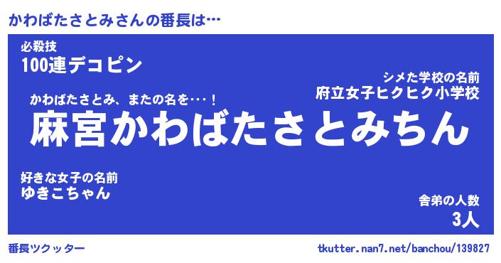 | ヒーロー風カッコイイあだ名 | 『スーパーカワバタサトミ』 |