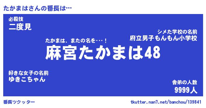 | 肩書あだ名 | 『たかまは御曹司』『たかまは総理大臣』 |
