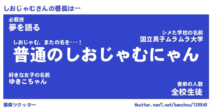 | 肩書あだ名 | 『しおじゃむ社長令嬢』『しおじゃむ塾長』 |