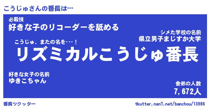 | 肩書あだ名 | 『こうじゅCEO』『こうじゅ国家主席』 |