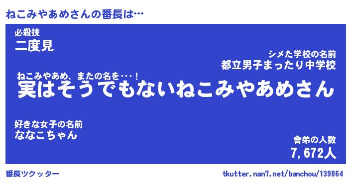 | 意味不明あだ名 | 『ペロリンねこみやあめ』 |