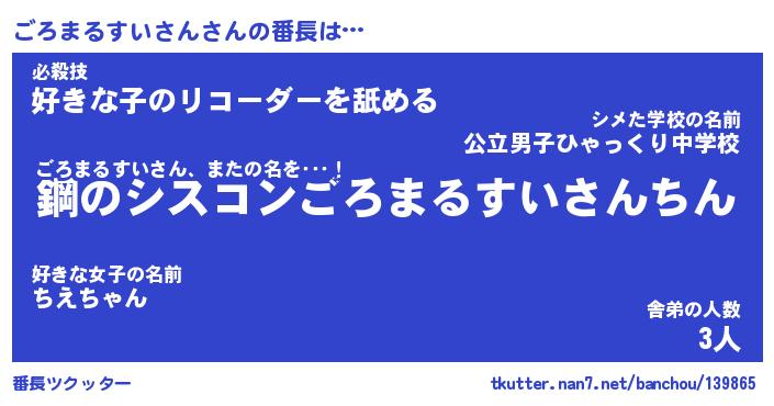 | 肩書あだ名 | 『ごろまるすいさん御曹司』 |