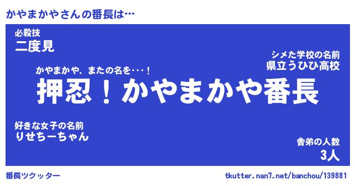 | ファンタジー風あだ名 | 『カヤフェル』『エターナルカヤマカヤー』 |
